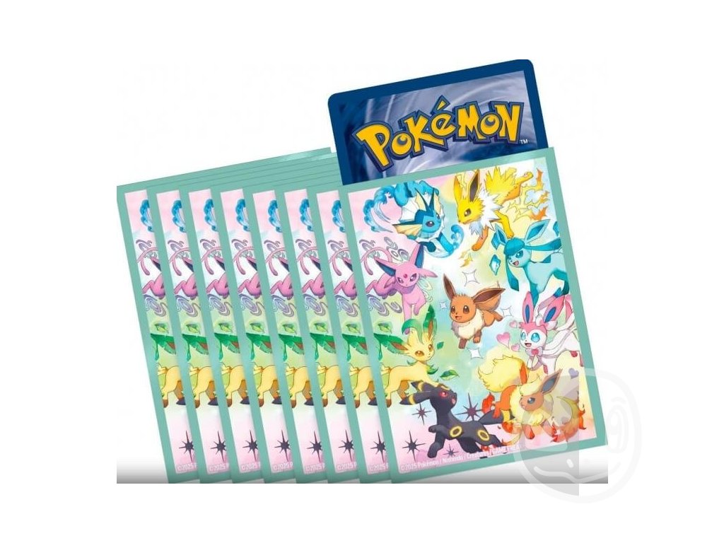 - 1x 65 kusů zabalené obaly na karty s Pokémonem Eevee a eevolucema