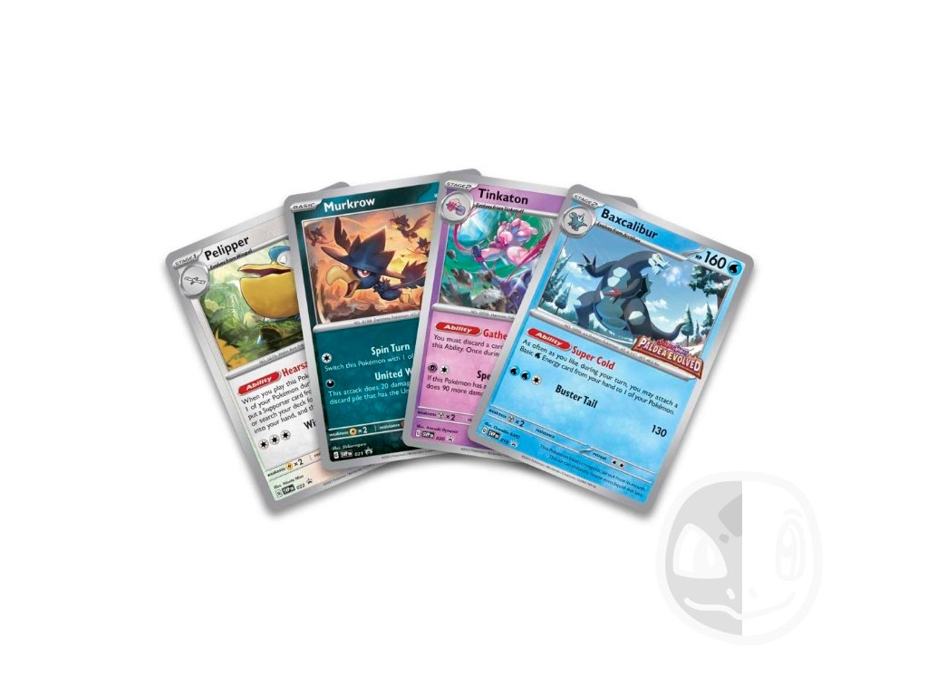 - Sealed promo je náhodný výběr z: Murkrow, Pelipper, Tinkaton nebo Baxcalibur
